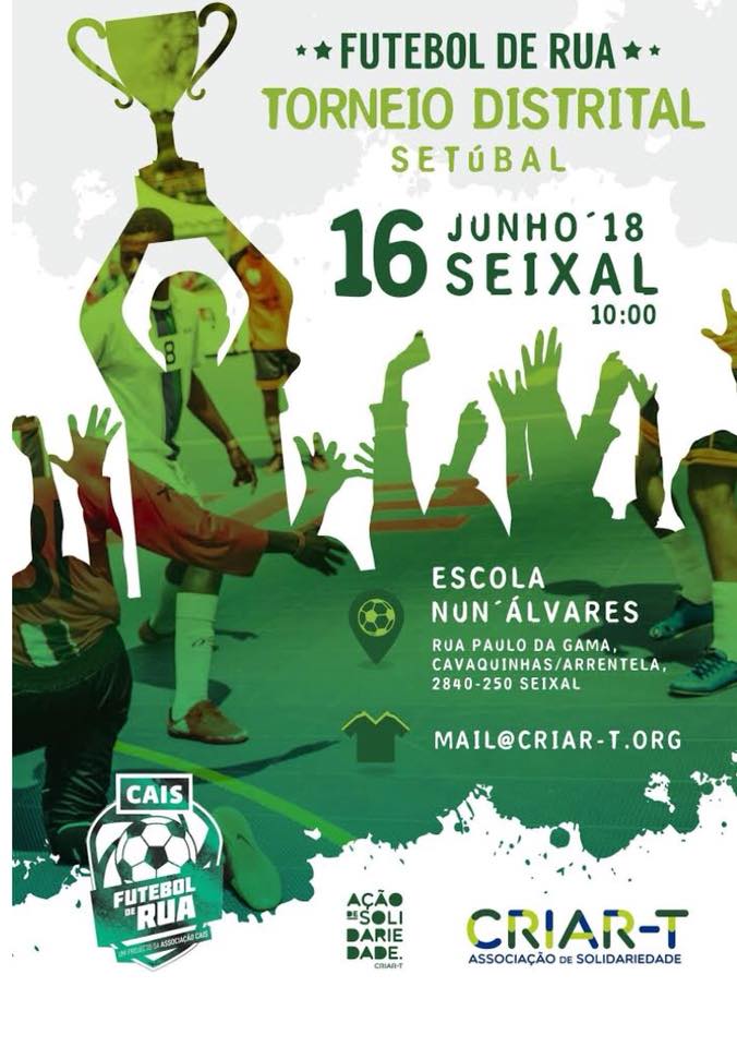 3 Junho, 2018 Torneio Futebol Rua 2018 Dia 16 de Junho, regressa o Torneio de Futebol de Rua, organizado pela Criar-T, como já vem sendo habitual! Inscrições e informações adicionais através do E-mail: mail@criar-t.org